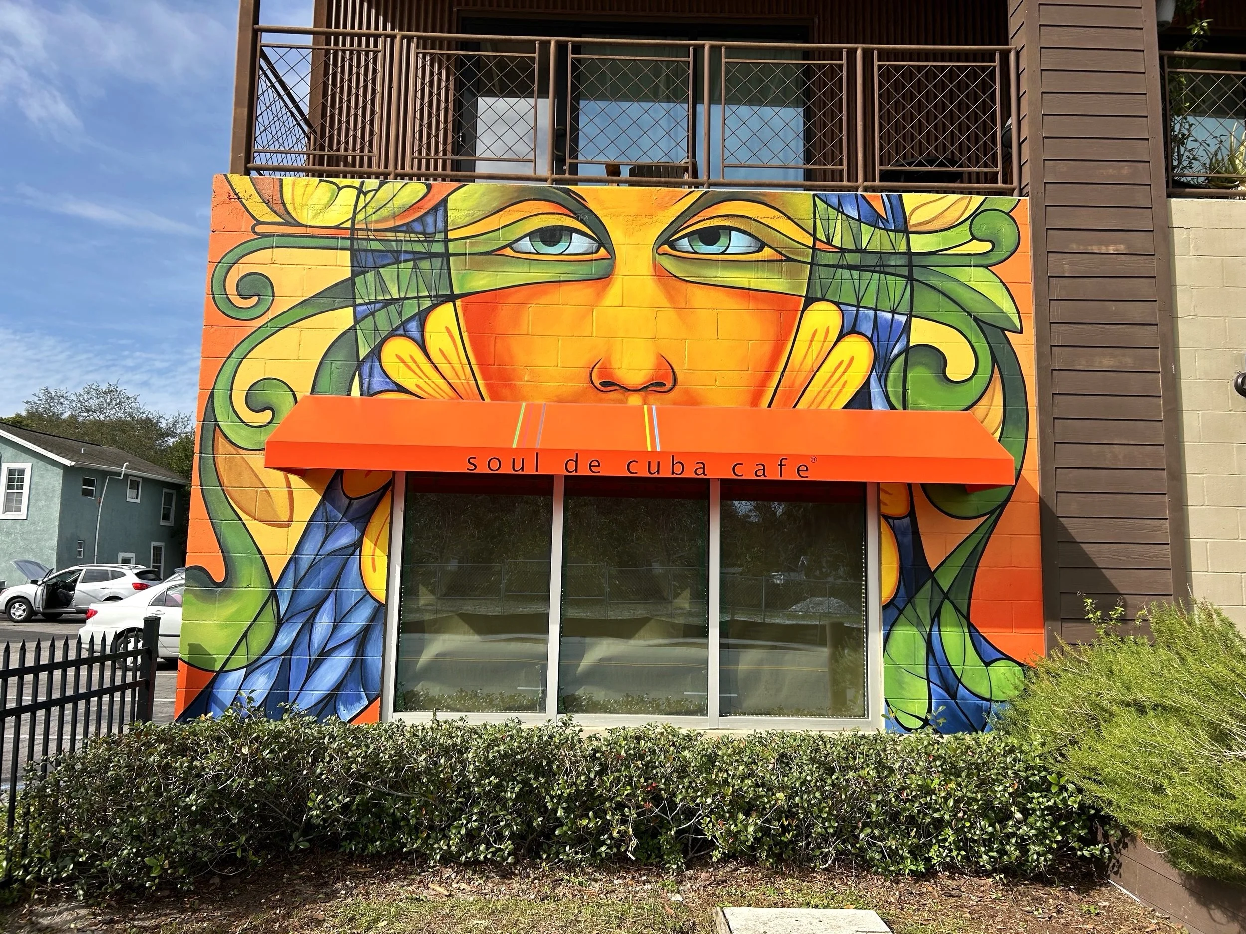 Soul de Cuba . 2024 . 14’ x 18’ . 6428 N Florida Ave, Tampa, FL 33604 Soul de Cuba Cafe . Seminole Heights see more murals